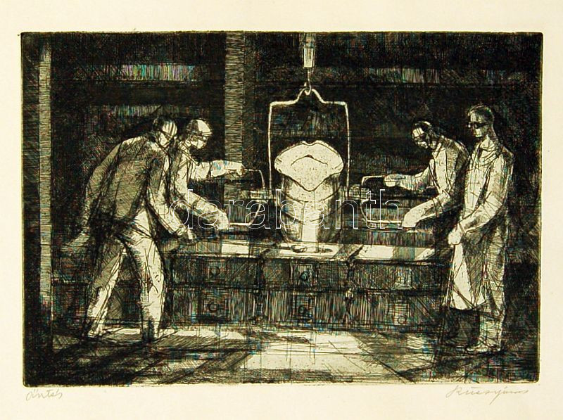 Kürz János: Öntés szignált rézkarc 28x40cm https://www.darabanth.com/hu/90-Gyorsarveres/90.0/Festmeny-mutargy-papirregiseg-egyeb/Tetelek-51-100-Lots-51-100~751/Kurz-Janos-Ontes-szignalt-rezkarc-28x40cm~II192947