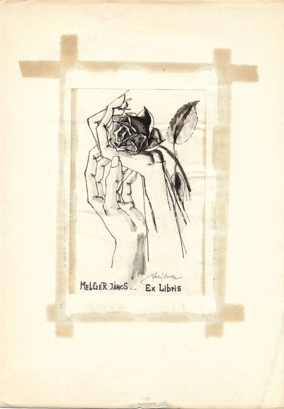 Leírás: Ex-libris azonosítatlan szignóval; toll, papír 10x17cm