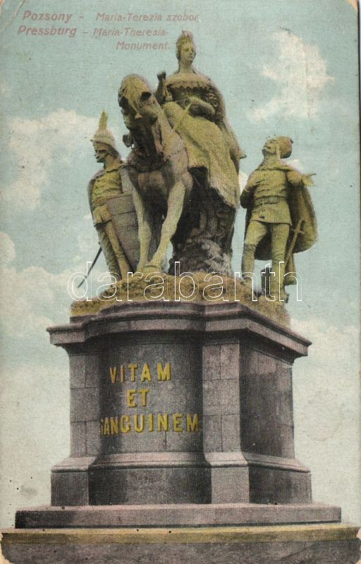 Pozsony Maria Theresia statue (EB) https://www.darabanth.com/hu/91-Gyorsarveres/91.0/Kepeslapok/Felvidek-Northern-Hungary~15073/Pozsony-Maria-Theresia-statue-EB~II203519