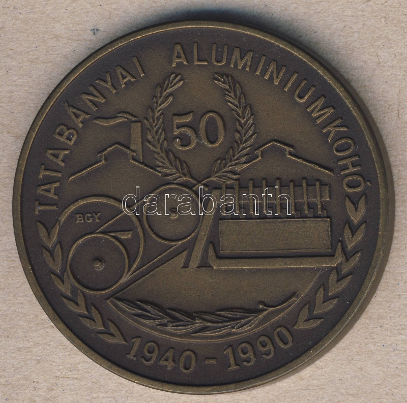 1990. "50 éves a Tatabányai Alumíniumkohó" Br emlékérem. Szign. BGY T:... https://www.darabanth.com/hu/91-Gyorsarveres/91.0/Numizmatika/Kulfoldi-es-magyar-emlekveretek-plakettek-zsetonok-kituntetesek-jevenyek-Foreign-and~15164/1990-50-eves-a-Tatabanyai-Aluminiumkoho-Br-emlekerem-Szign-BGY-T2~II201437