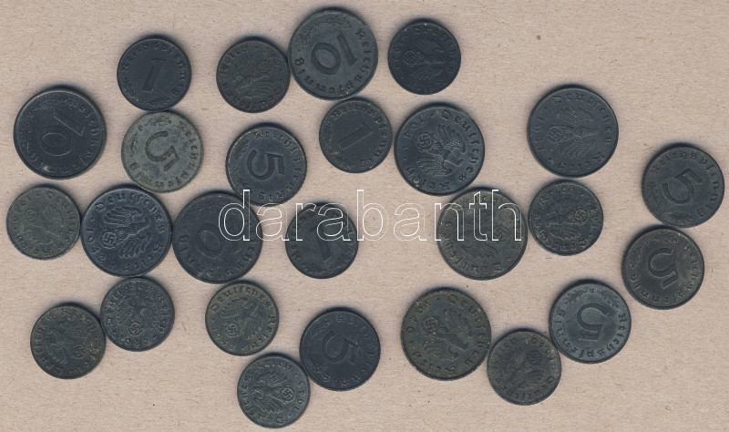 Leírás: Német 3. Birodalom 1940-es évek váltópénz tétel klf évszámokkal és verdejelekkel 1Pf(12x), 5Pf(6x), 10Pf(8x) összesen 28db mind h.k.-tel T:2,2/3,3