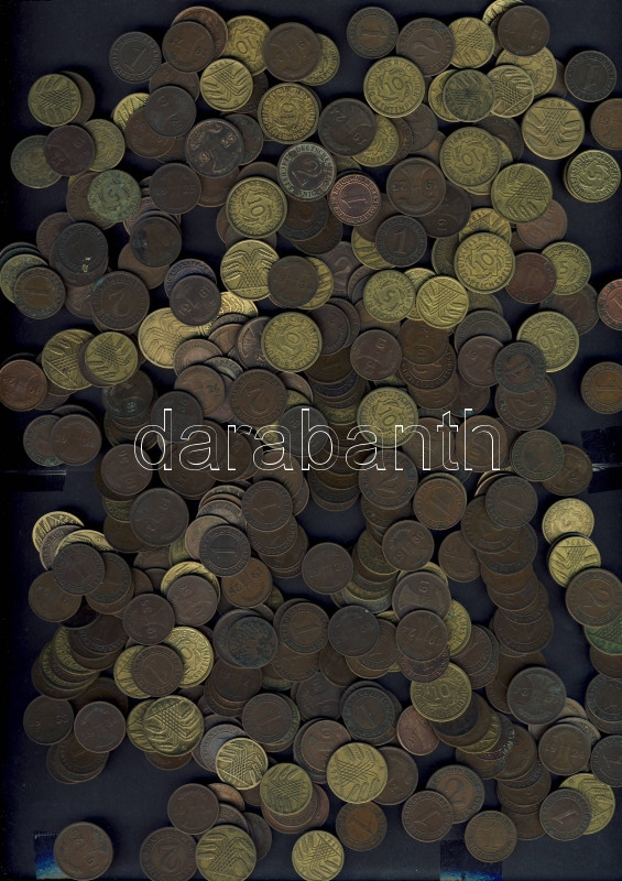 Leírás: Német Birodalom/Weimari Köztársaság 1920-30-as évek 1kg vegyes váltópénz 1Pf, 2Pf, 5Pf, 10Pf, jó hagyaték tétel T:2/3,3,4 (nagyon kevés)