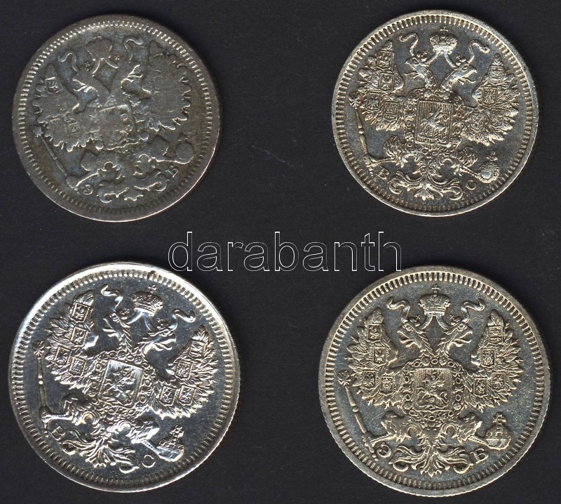 Oroszország 15k Ag 1906,1915 + 20k Ag 1911,1915 T:2,3 https://www.darabanth.com/hu/91-Gyorsarveres/91.0/Numizmatika/Kulfoldi-fem-es-ezustpenzek-a-kozepkortol-napjainkig-Foreign-metal-and-silver-coins-from-the~15170/Oroszorszag-15k-Ag-1906-1915-plus-20k-Ag-1911-1915-T2-3~II202111