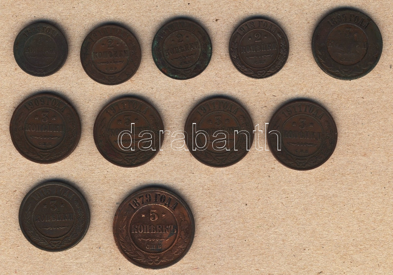 Leírás: Oroszország 1k 1889 + 2k 1910 (2x),1913 + 3k 1899,1909,1911 (3x),1911 (3x),1915 + 5k 1879 T:2/3,3 Összesen 11db!
