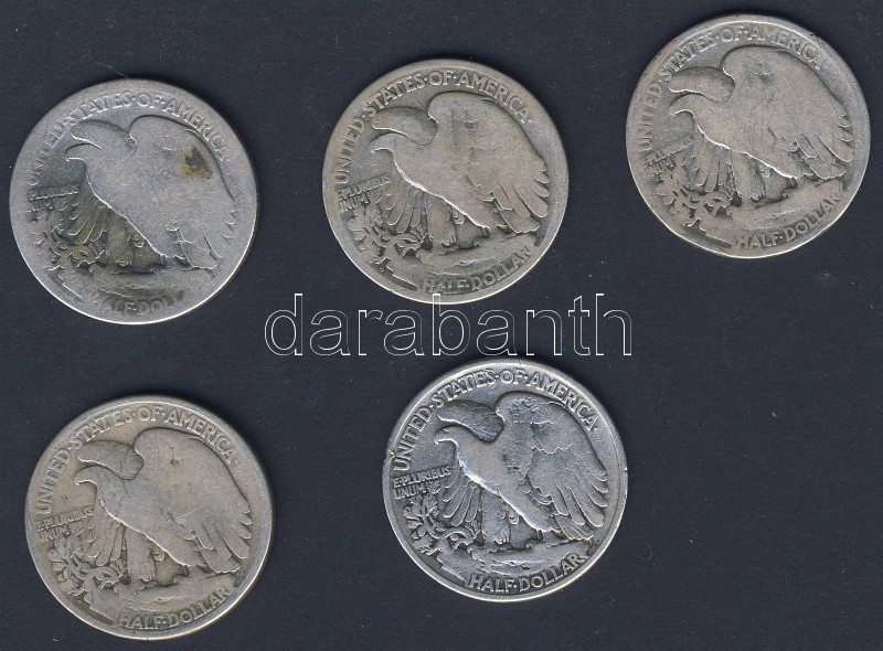 Leírás: USA 1917-43. 1/2$ Ag (5x) "Walking" mind klf évszámmal! T:3,4