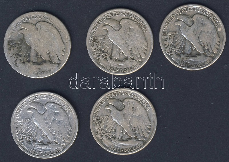Leírás: USA 1917-45. 1/2$ Ag (5x) "Walking" mind klf évszámmal! T:3,4