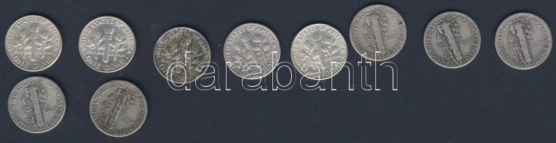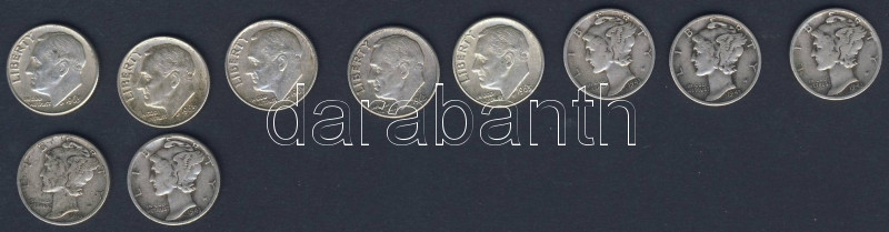 USA 1943. 10c Ag "Mercury" (5x) + 1963. 10c Ag "Roosevelt" (5x) T:2,3,... https://www.darabanth.com/hu/91-Gyorsarveres/91.0/Numizmatika/Kulfoldi-fem-es-ezustpenzek-a-kozepkortol-napjainkig-Foreign-metal-and-silver-coins-from-the~15170/USA-1943-10c-Ag-Mercury-5x-plus-1963-10c-Ag-Roosevelt-5x-T2-3-34~II197392