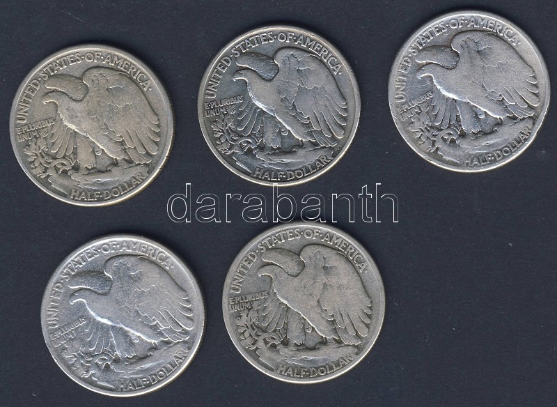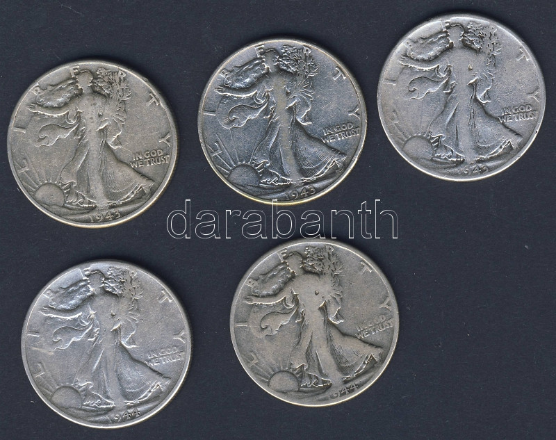 Leírás: USA 1943-44. 1/2$ Ag (5x) "Walking" 2x klf évszámmal! T:3,3/4+