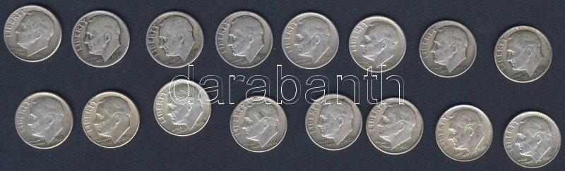 USA 1946-64. 10c Ag "Roosevelt" (16x) mind klf évszám! T:2,3 https://www.darabanth.com/hu/91-Gyorsarveres/91.0/Numizmatika/Kulfoldi-fem-es-ezustpenzek-a-kozepkortol-napjainkig-Foreign-metal-and-silver-coins-from-the~15170/USA-1946-64-10c-Ag-Roosevelt-16x-mind-klf-evszam-T2-3~II197378