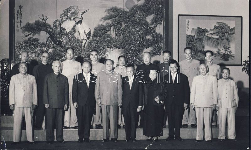 Leírás: cca 1975 Mao ce Tung kínai politikusokkal korabeli fotón (kis szakadás)