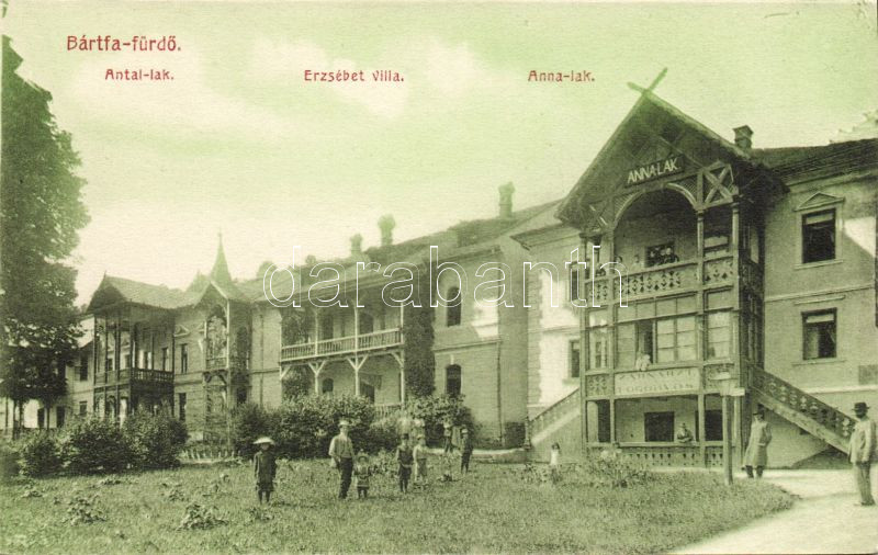 Bártfafürdő Antal lak, Erzsébet villa, Anna lak https://www.darabanth.com/hu/93-Gyorsarveres/93.0/Kepeslapok/Felvidek-Northern-Hungary-Slovakia~5210/Bartfafurdo-Antal-lak-Erzsebet-villa-Anna-lak~II210748