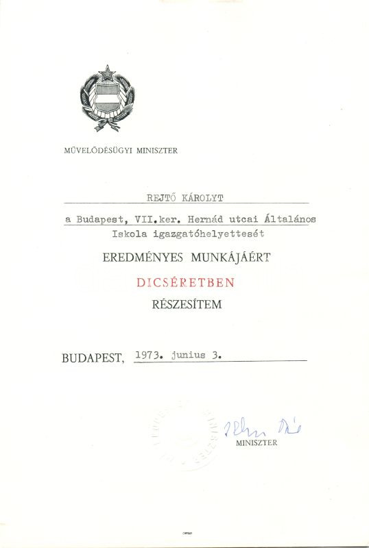 Leírás: Köpeczi Béla és Ilku Pál miniszterek aláírásai