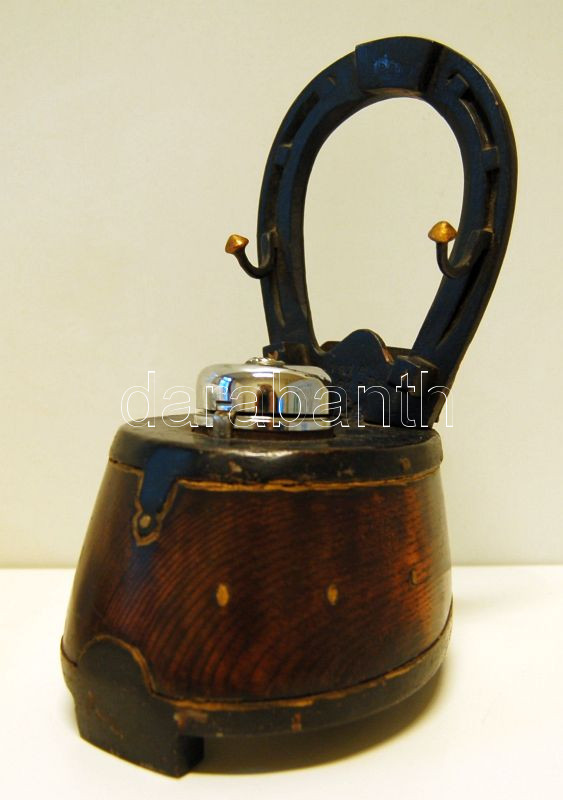 Leírás: 1914 Lópatkók felhasználásával készített égőt tartalmazó dísz hajós jelvénnyel