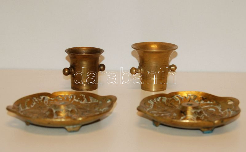 Leírás: Kis réz tétel: 2 db mini mozsár + 2 db dísz