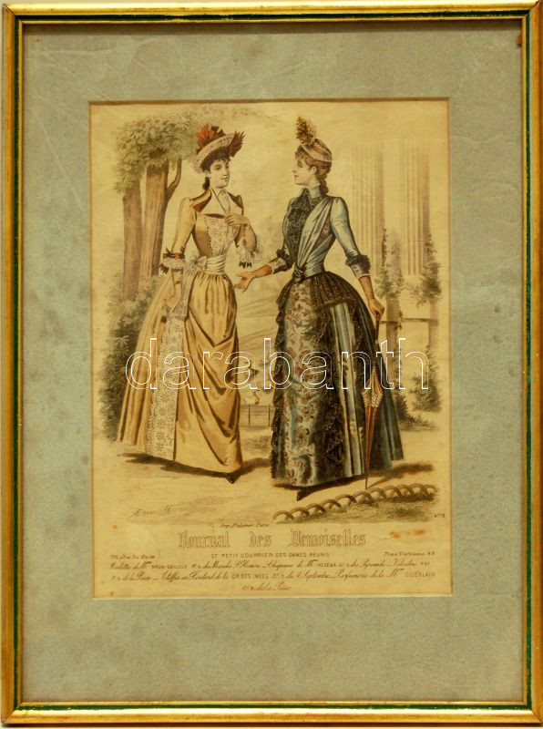 Leírás: cca 1880 Női divat színezet metszet 30x40cm keretben