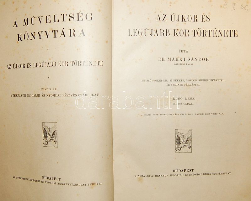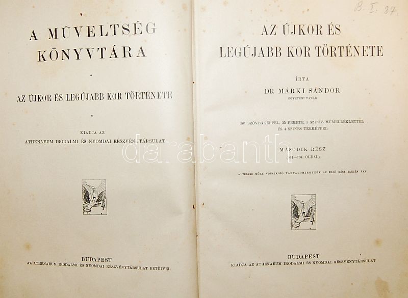 1910 A műveltség könyvtára: Az Újkor, A Legújebb kor 2 kötet, össz. 704 oldal képekkel + térképekkel. Írta: Dr. Márki Sándor, Athenaeum nyomda jó állapotban