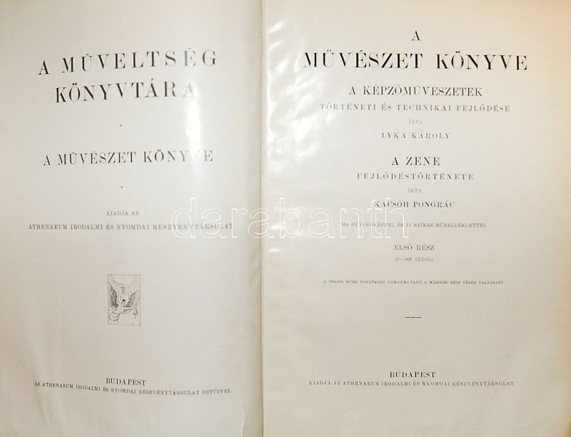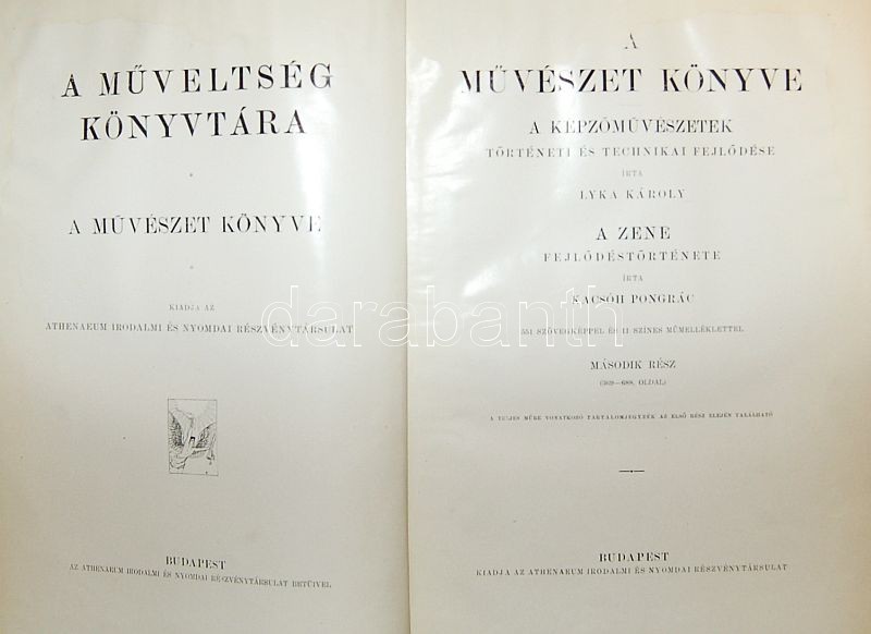 1919 A műveltség könyvtára: A művészet (Képzőművészet, zene) I.-II. kötet, 699 oldal képekkel + térképekkel. Írta: Lyka Károly, Kacsóh Pongrác, Athenaeum nyomda kiváló állapotban