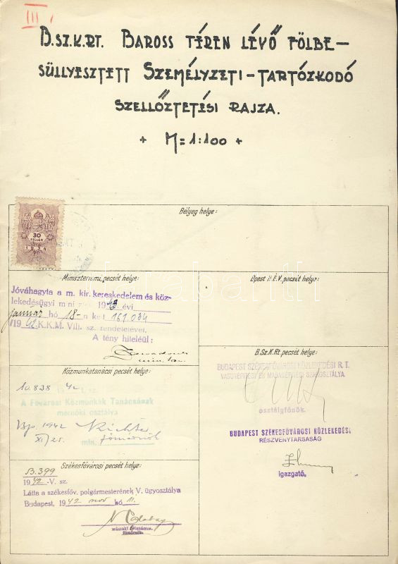 1942 Baross téri BSZKRT létesítmény okmánybélyeges tervrajza jóváhagyó... https://www.darabanth.com/hu/94-Gyorsarveres/94.0/Festmeny-mutargy-papirregiseg-egyeb/Okmanyok-Documents~257/1942-Baross-teri-BSZKRT-letesitmeny-okmanybelyeges-tervrajza-jovahagyo-pecsetekkel~II215564