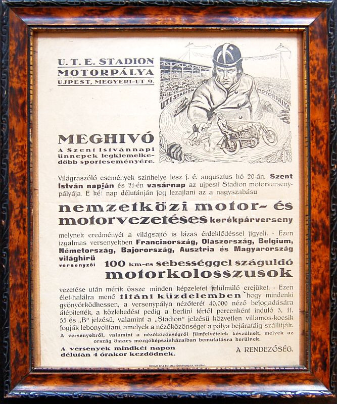 cca 1930 Motor és kerékpárverseny az UTE stadionban bekeretezett plaká... https://www.darabanth.com/hu/94-Gyorsarveres/94.0/Festmeny-mutargy-papirregiseg-egyeb/Reklam-Advertising~263/cca-1930-Motor-es-kerekparverseny-az-UTE-stadionban-bekeretezett-plakat-30x37-cm~II215728