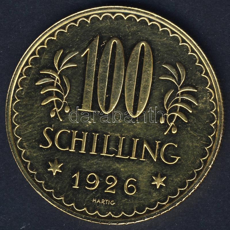 Ausztria 1926. 100Sch Au 23,55g T:P (Pl) https://www.darabanth.com/hu/94-Gyorsarveres/94.0/Numizmatika/Kulfoldi-es-magyar-arany-es-platinapenzek~280/Ausztria-1926-100Sch-Au-23-55g-TP-Pl~II215322