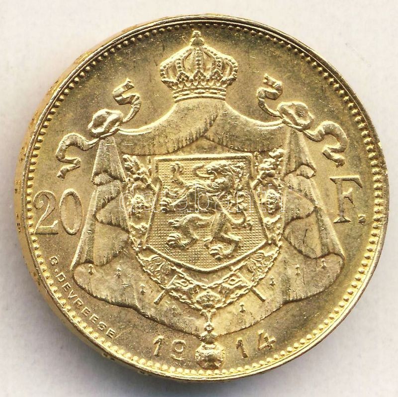 Leírás: Belgium 1914. 20Fr Au 6,4516g flamand nyelvű variáns I. Albert T:2+