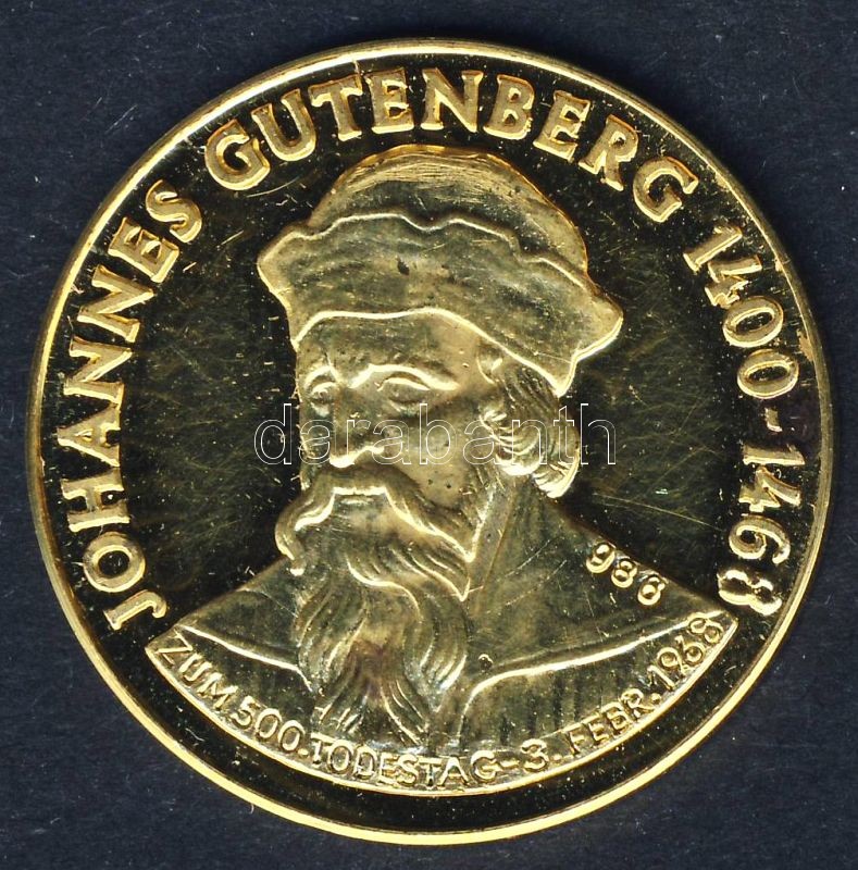 Leírás: NSZK 1968. "Mainz-Gutenberg" Au 3,46g T:1