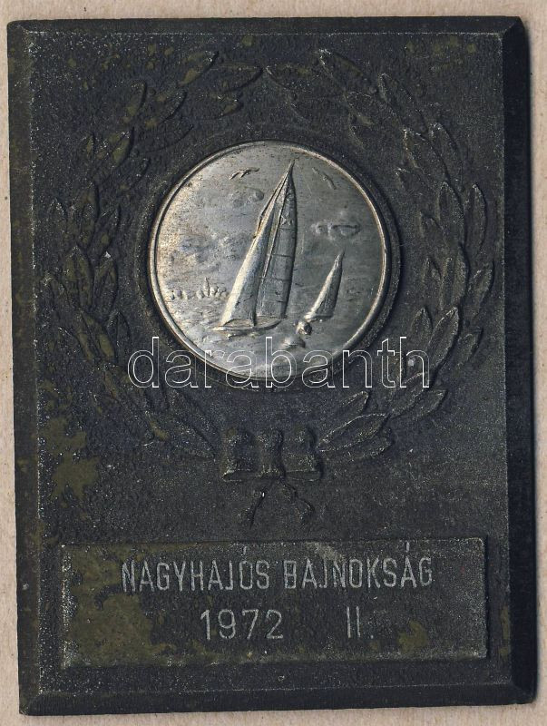 1972. "Nagyhajós bajnokság" szögletes fém plakett T:2- https://www.darabanth.com/hu/94-Gyorsarveres/94.0/Numizmatika/Kulfoldi-es-magyar-emlekveretek-plakettek-zsetonok-kituntetesek-jelvenyek~278/1972-Nagyhajos-bajnoksag-szogletes-fem-plakett-T2-~II216002