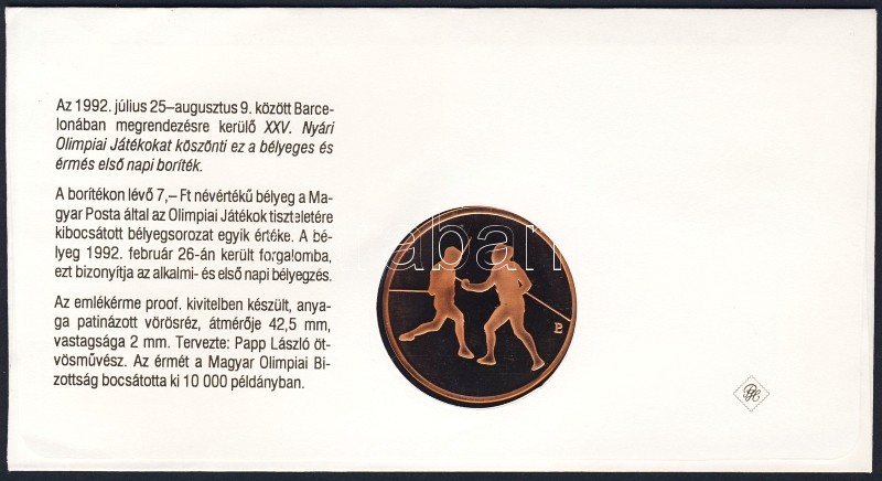 Leírás: 1992. "Barcelona" emlékérem érmés borítékon T:PP Csak 10.000db!