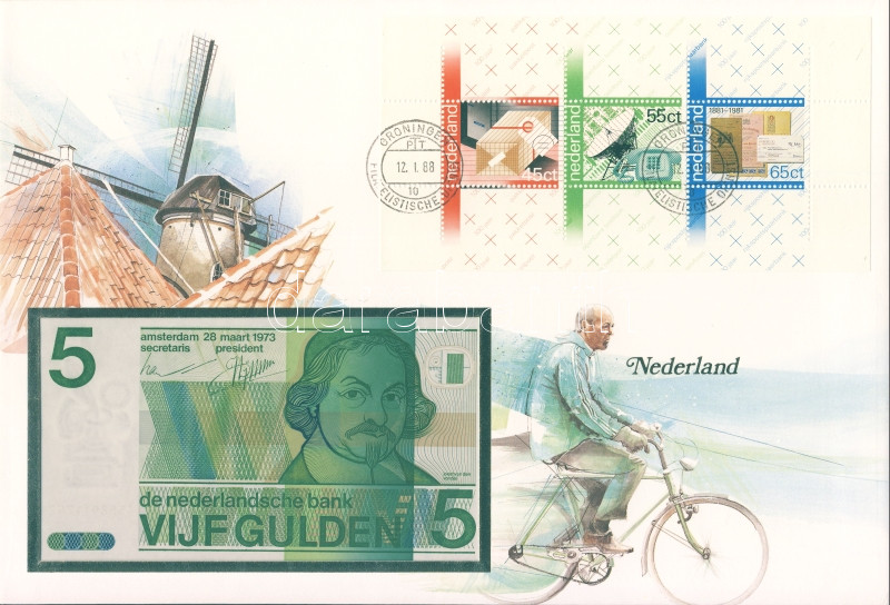 Leírás: Hollandia 1973. 5G dekoratív bankjegyes, bélyeges borítékon T:I
