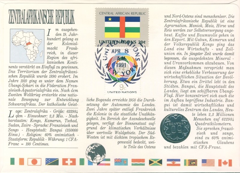 Leírás: Közép-Afrikai Államok 1986. 50Fr érmés, bélyeges borítékon "Közép-Afrikai Köztársaság" T:1