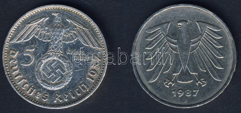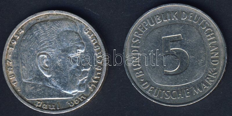 Leírás: Német 3. Birodalom 1937. 5M Ag "Hindenburg" T:3 + NSZK 1987. 5M Ag T:2/3+