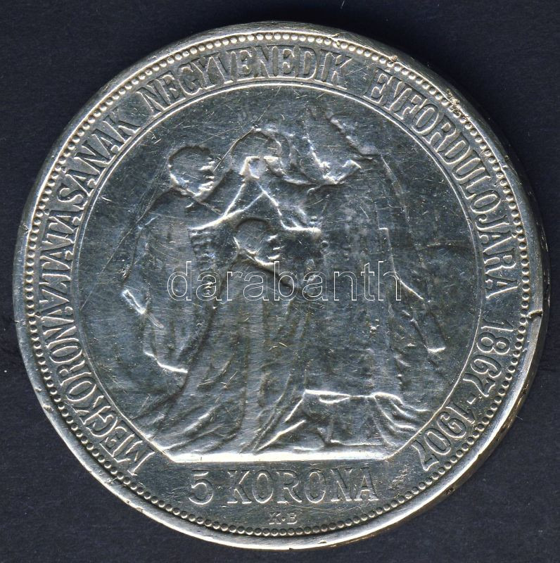 Leírás: 1907. 5K Ag "Koronázási évforduló" T:3 ph.