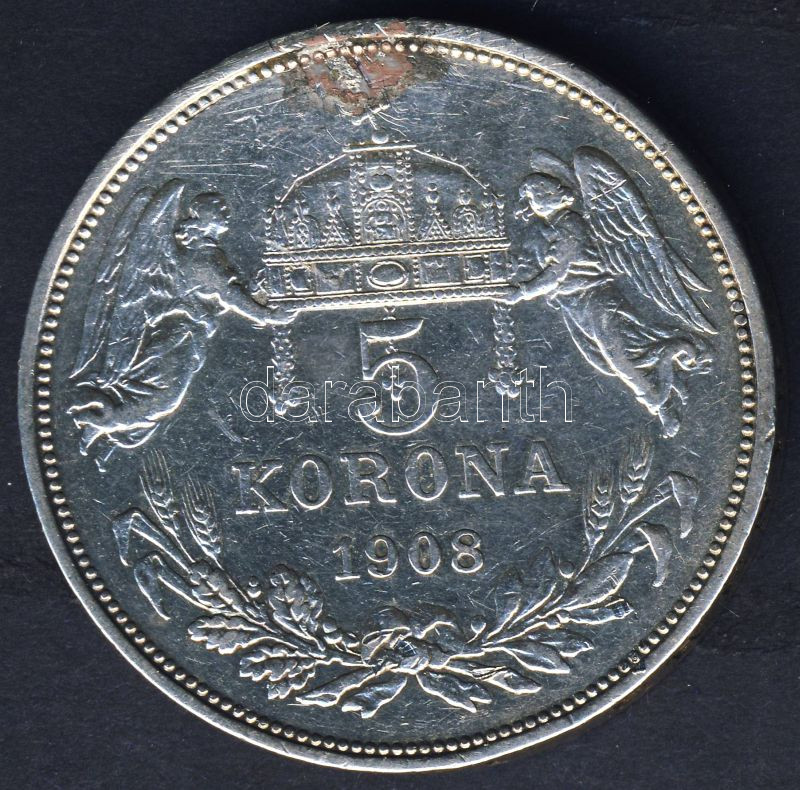 Leírás: 1908. 5K Ag T:3 k. kis ph.