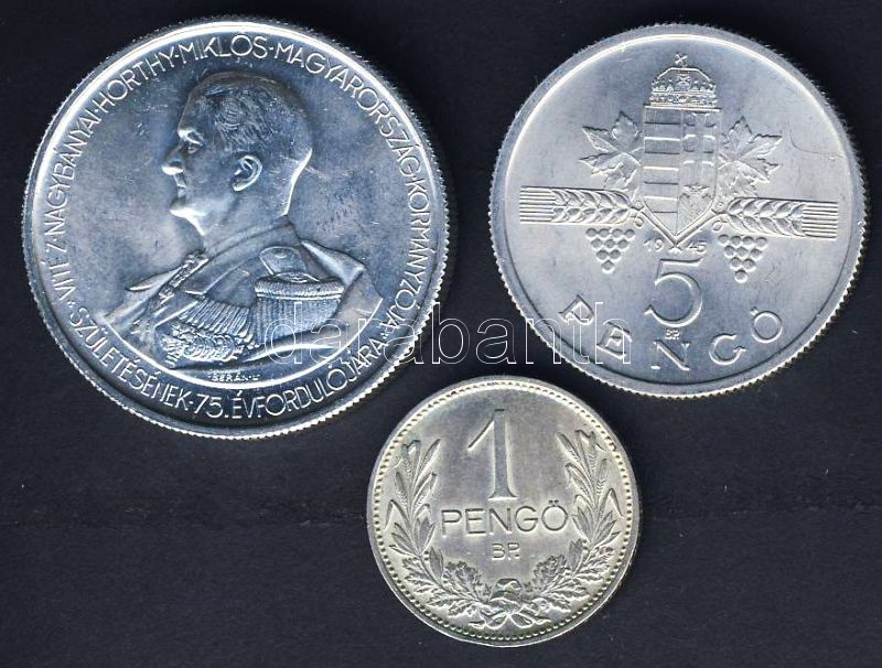 Leírás: 1939. 1P Ag T:2+ + 1943+1945. 5P Alu (2x) 2 klf db T:2