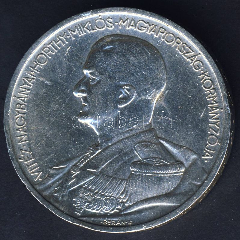 Leírás: 1939. 5P Ag "Horthy balra" T:2 ph.
