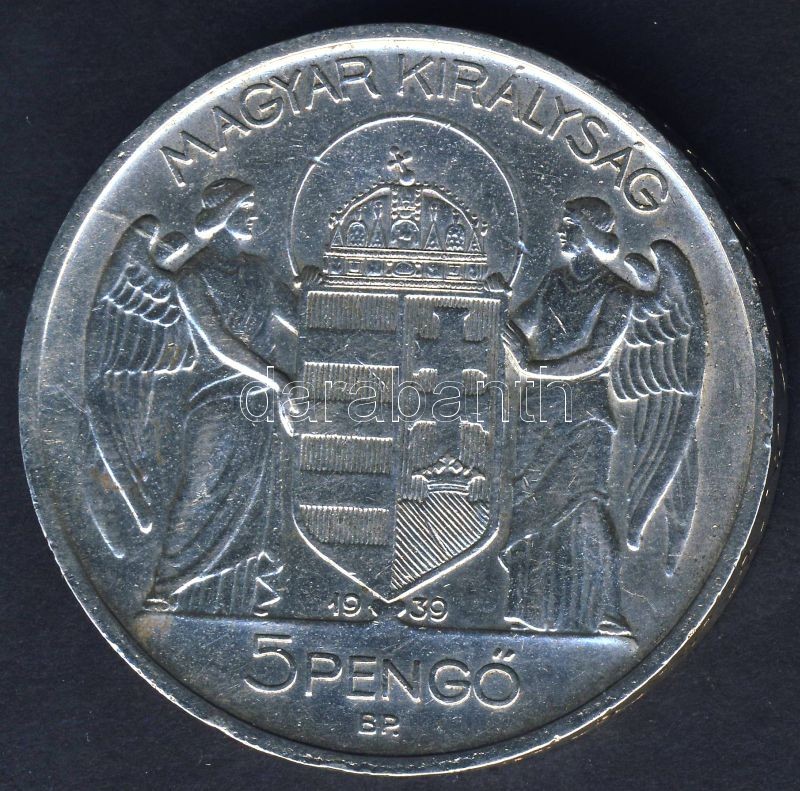 1939. 5P Ag "Horthy balra" T:2 ph. https://www.darabanth.com/hu/94-Gyorsarveres/94.0/Numizmatika/Magyar-es-magyar-verdejelu-fem-es-ezustpenzek-a-kozepkortol-napjainkig~283/1939-5P-Ag-Horthy-balra-T2-ph~II216368