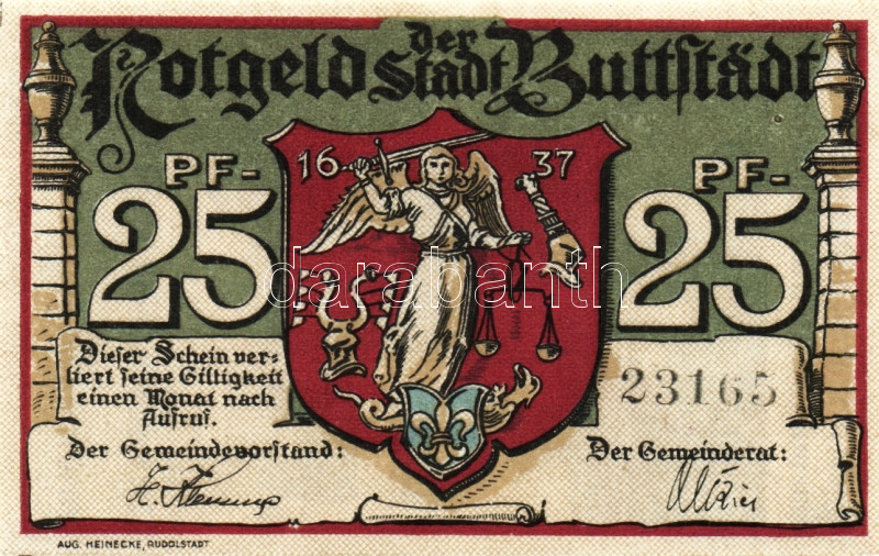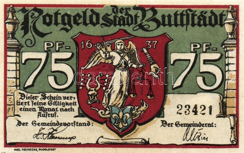 Leírás: Német Birodalom/Weimari Köztársaság/ Buttstadt 1921.25Pf (2x) + 50Pf (2x) + 75Pf (2x) összesen 6klf db, teljes sor T:I