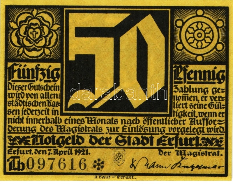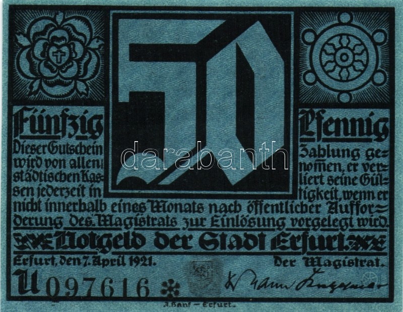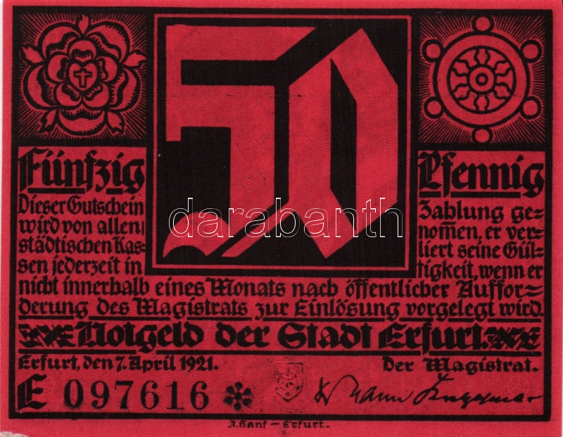 Német Birodalom/Weimari Köztársaság/ Erfurt 1921. 50Pf (5x) összesen 5... https://www.darabanth.com/hu/94-Gyorsarveres/94.0/Numizmatika/Nemet-Birodalom-Csaszarsag-Weimari-Koztarsasag-Nemet-Allamok-bankjegyei~274/Nemet-BirodalomWeimari-Koztarsasag-Erfurt-1921-50Pf-5x-osszesen-5klf-db-teljes-sor-TI~II211112
