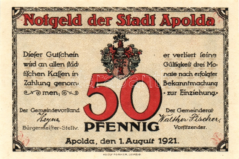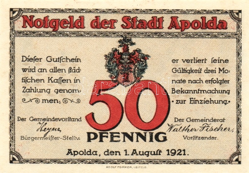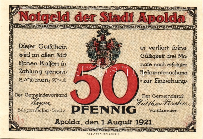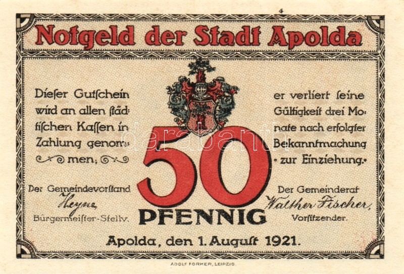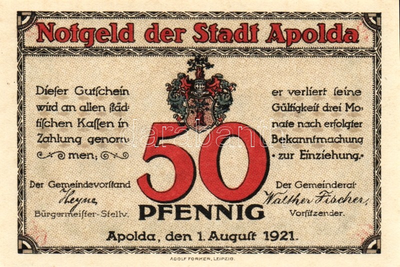 Német Birodalom/Weimari Köztársaság/Apolda 1921. 50Pf(6x) összesen:6kl... https://www.darabanth.com/hu/94-Gyorsarveres/94.0/Numizmatika/Nemet-Birodalom-Csaszarsag-Weimari-Koztarsasag-Nemet-Allamok-bankjegyei~274/Nemet-BirodalomWeimari-KoztarsasagApolda-1921-50Pf6x-osszesen6klf-db-teljes-sor-TI~II211587