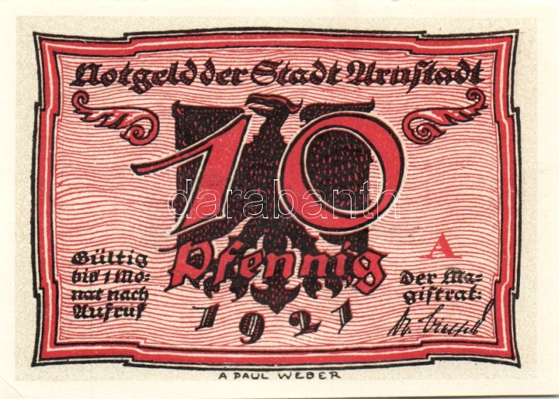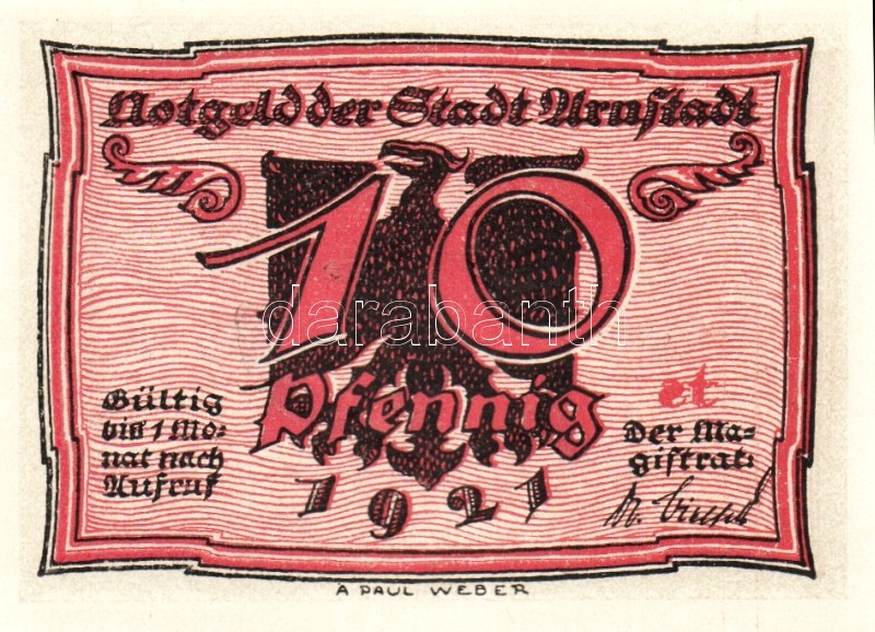 Német Birodalom/Weimari Köztársaság/Arnstadt 1921. 10Pf(6x) összesen:6... https://www.darabanth.com/hu/94-Gyorsarveres/94.0/Numizmatika/Nemet-Birodalom-Csaszarsag-Weimari-Koztarsasag-Nemet-Allamok-bankjegyei~274/Nemet-BirodalomWeimari-KoztarsasagArnstadt-1921-10Pf6x-osszesen6klf-db-teljes-sor-TI~II211582