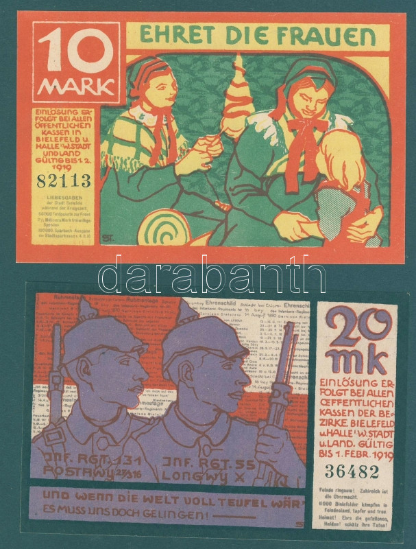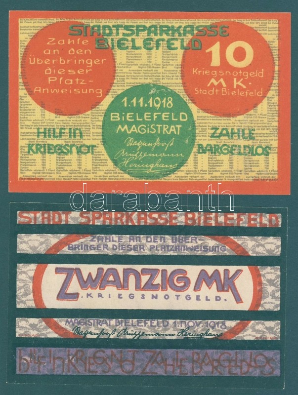 Leírás: Német Birodalom/Weimari Köztársaság/Bielefeld 1918. 10M, 20M T:I