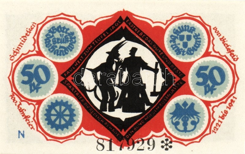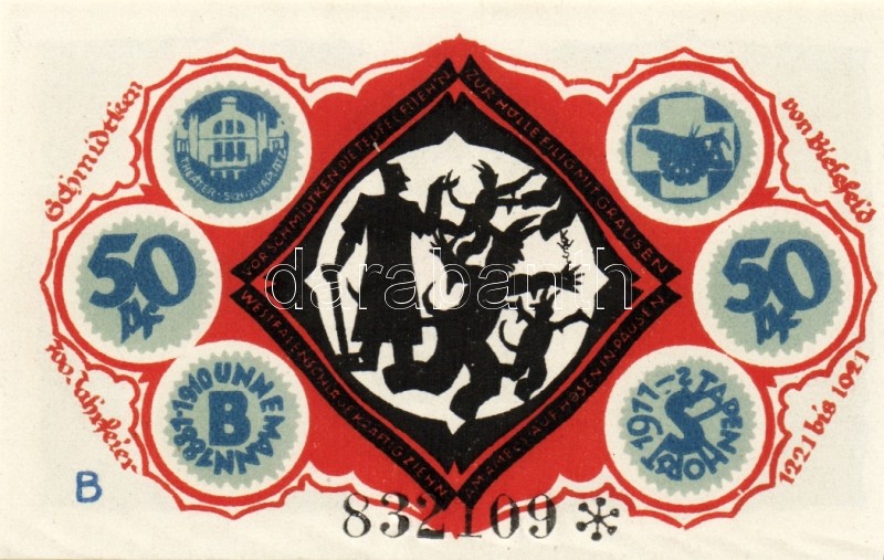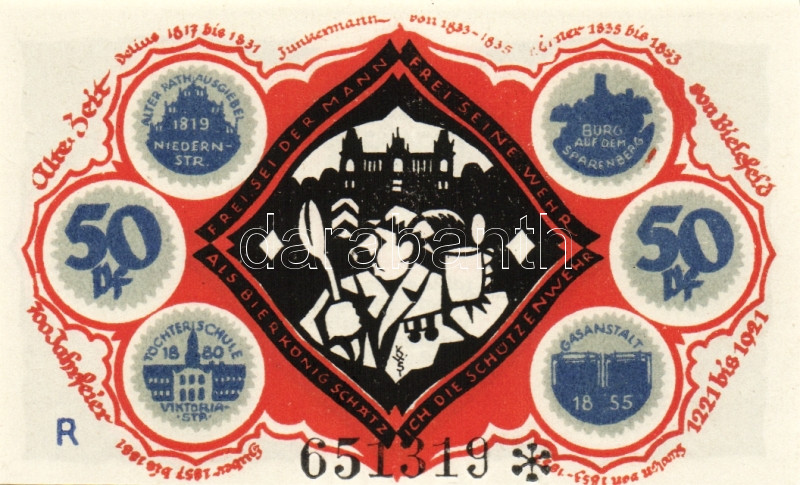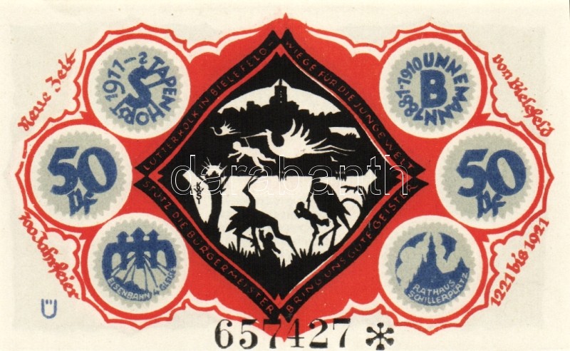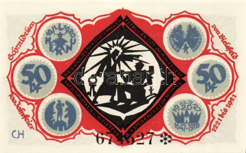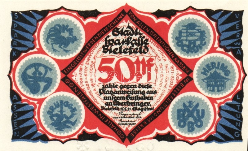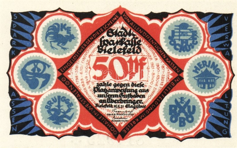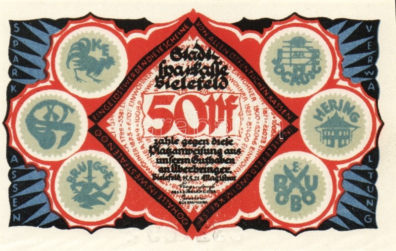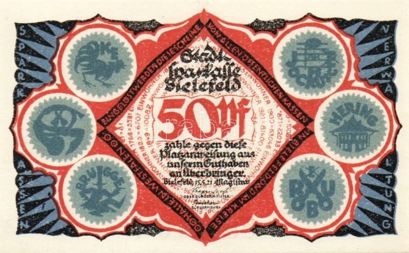 Leírás: Német Birodalom/Weimari Köztársaság/Bielefeld 1921. 50Pf (6x) összesen:6klf db, teljes sor T:I