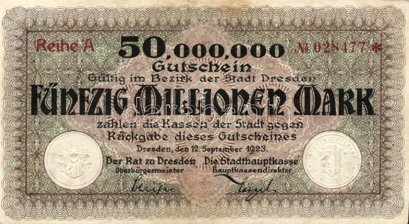 Német Birodalom/Weimari Köztársaság/Dresden 1923. 50.000.000M "A" T:II https://www.darabanth.com/hu/94-Gyorsarveres/94.0/Numizmatika/Nemet-Birodalom-Csaszarsag-Weimari-Koztarsasag-Nemet-Allamok-bankjegyei~274/Nemet-BirodalomWeimari-KoztarsasagDresden-1923-50000000M-A-TII~II215170