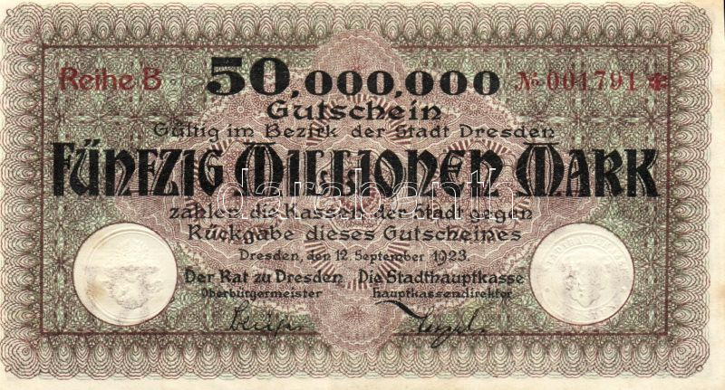 Leírás: Német Birodalom/Weimari Köztársaság/Dresden 1923. 50.000.000M "B" T:II