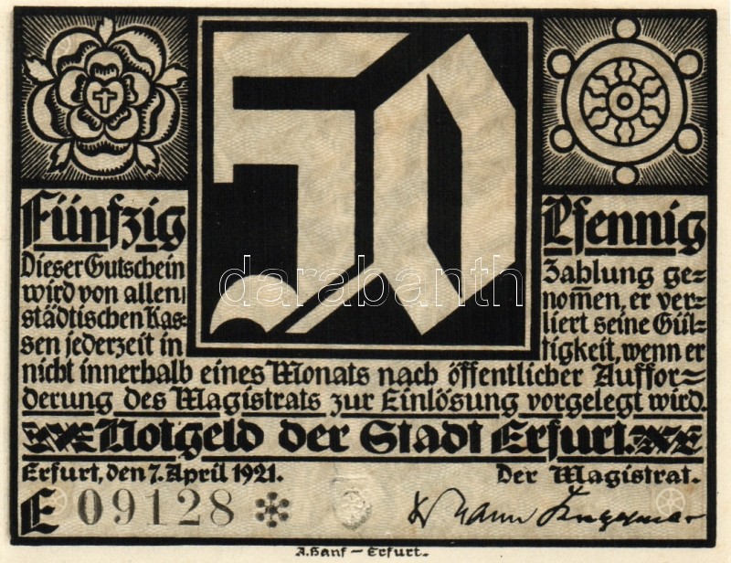 Német Birodalom/Weimari Köztársaság/Erfurt 1921. 50Pf(5x) összesen:5kl... https://www.darabanth.com/hu/94-Gyorsarveres/94.0/Numizmatika/Nemet-Birodalom-Csaszarsag-Weimari-Koztarsasag-Nemet-Allamok-bankjegyei~274/Nemet-BirodalomWeimari-KoztarsasagErfurt-1921-50Pf5x-osszesen5klf-db-teljes-sor-TI~II211568