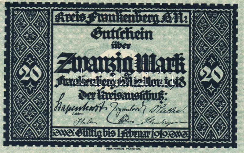 Leírás: Német Birodalom/Weimari Köztársaság/Frankenberg H.N. 1918. 20M hivatalos érvénytelenítéssel T:I