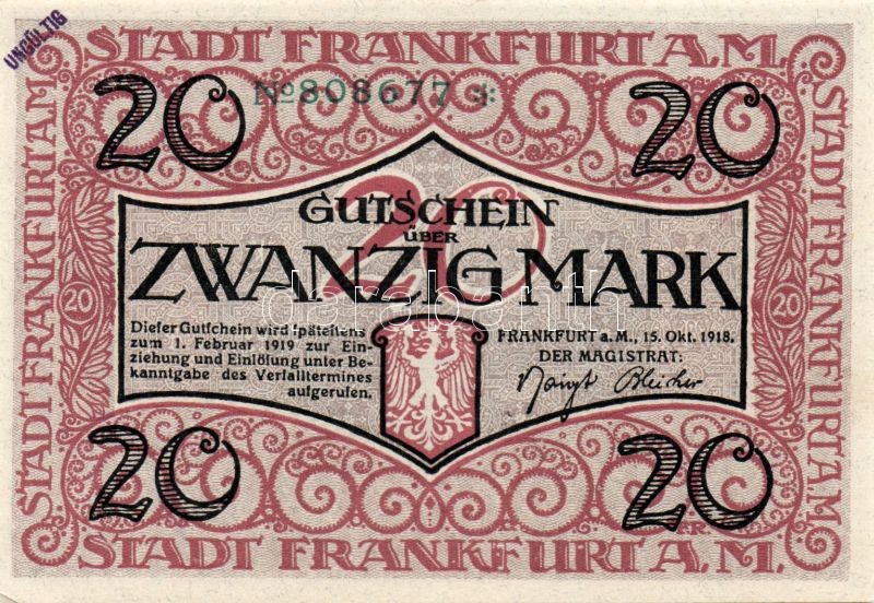 Német Birodalom/Weimari Köztársaság/Frankfurt a. Main 1918. 5M, 10M, 2... https://www.darabanth.com/hu/94-Gyorsarveres/94.0/Numizmatika/Nemet-Birodalom-Csaszarsag-Weimari-Koztarsasag-Nemet-Allamok-bankjegyei~274/Nemet-BirodalomWeimari-KoztarsasagFrankfurt-a-Main-1918-5M-10M-20M-mind-hivatalos-erveny~II214920