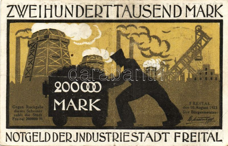 Leírás: Német Birodalom/Weimari Köztársaság/Freital 1923.8.10. 200.000M (2x) klf variánsok T:II,II/III