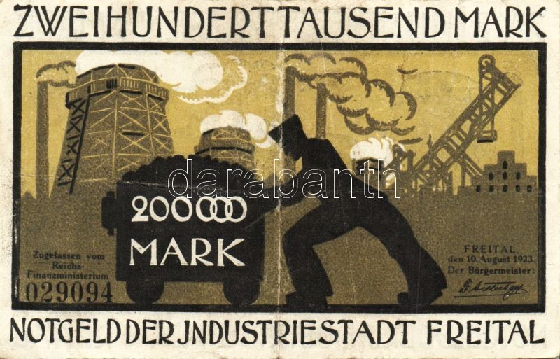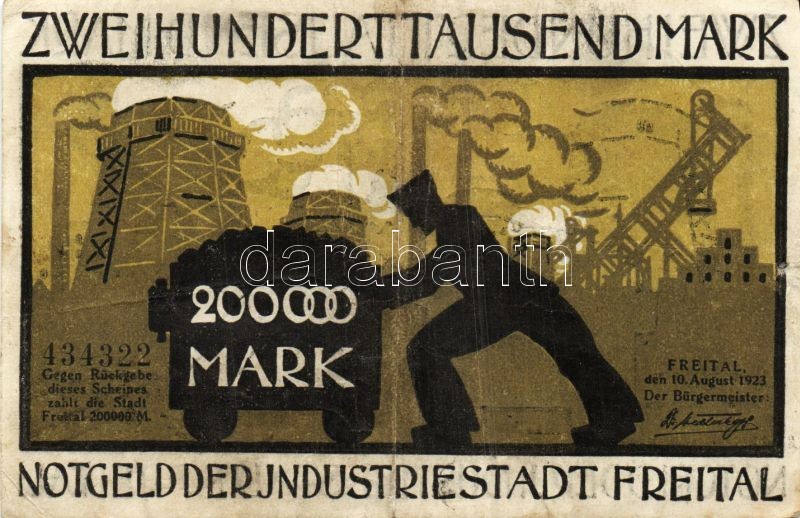 Német Birodalom/Weimari Köztársaság/Freital 1923.8.10. 200.000M (2x) k... https://www.darabanth.com/hu/94-Gyorsarveres/94.0/Numizmatika/Nemet-Birodalom-Csaszarsag-Weimari-Koztarsasag-Nemet-Allamok-bankjegyei~274/Nemet-BirodalomWeimari-KoztarsasagFreital-1923810-200000M-2x-klf-variansok-TII-IIIII~II215344