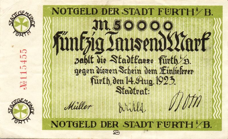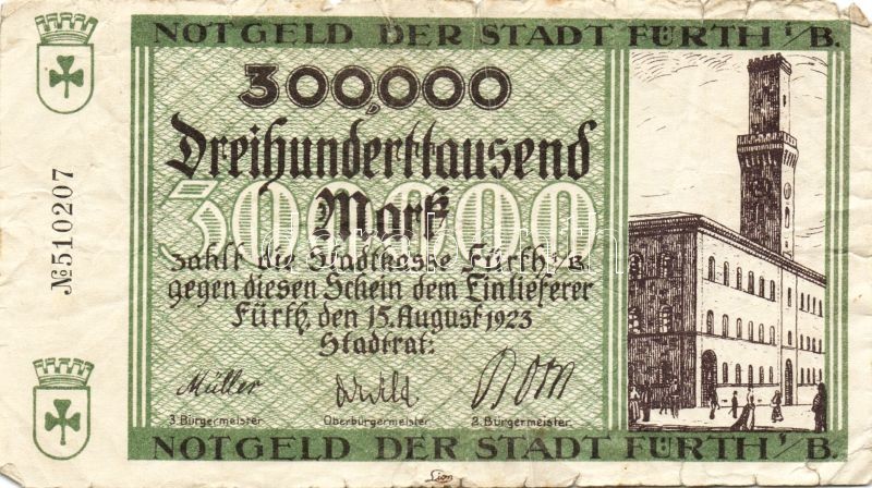 Német Birodalom/Weimari Köztársaság/Fürth 1923. 50.000M, 200.000M, 300... https://www.darabanth.com/hu/94-Gyorsarveres/94.0/Numizmatika/Nemet-Birodalom-Csaszarsag-Weimari-Koztarsasag-Nemet-Allamok-bankjegyei~274/Nemet-BirodalomWeimari-KoztarsasagFurth-1923-50000M-200000M-300000M-2000000M-TIIIII~II215356